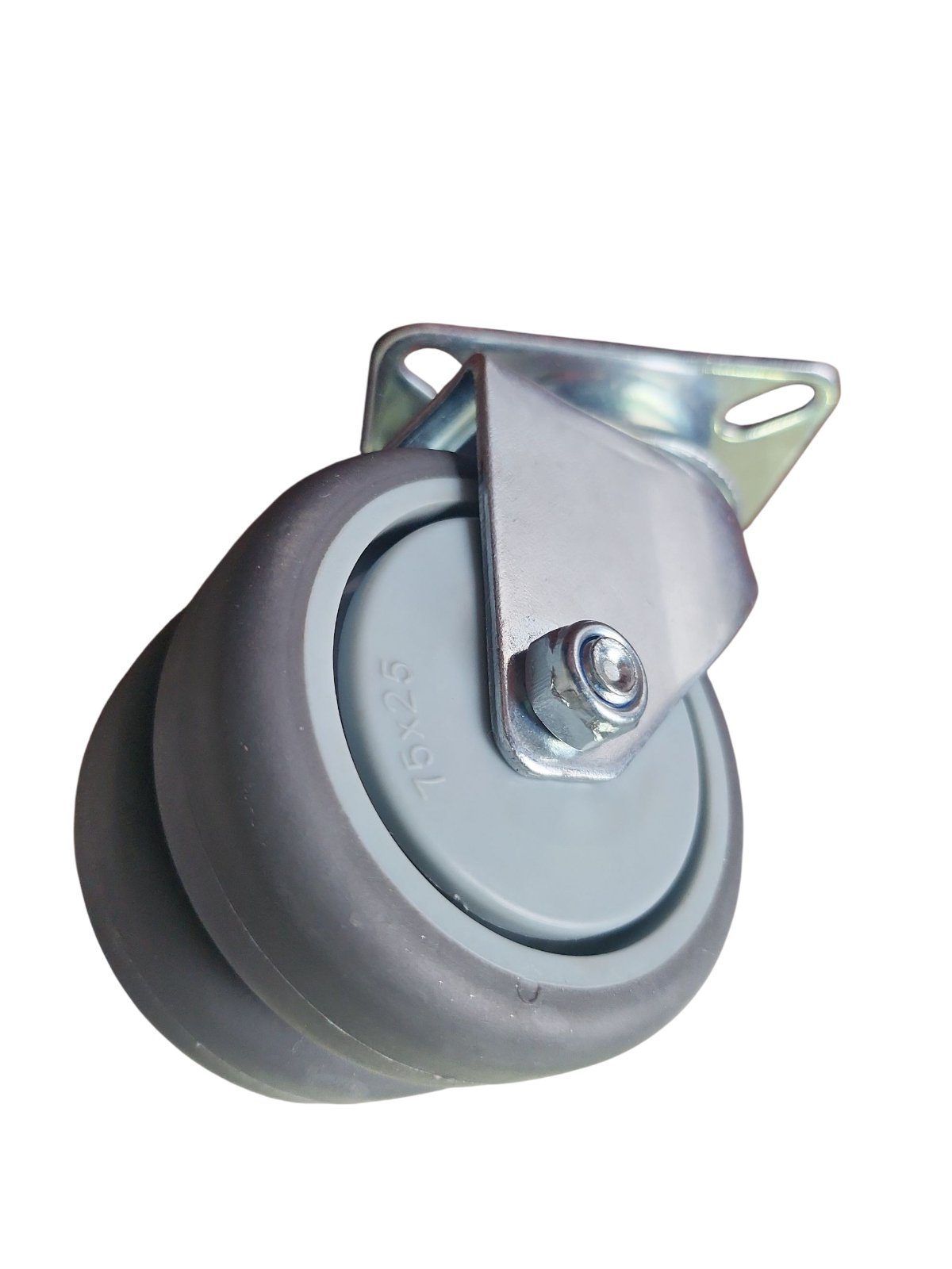 Колесо апаратне поворотне із майданчиком. Диск колеса виконаний із поліпропілену, з контактним шаром із термопластичної гуми. Апарані колеса призначені для використання на рівних покриттях (стандартні покриття усередині приміщення). Даними колесами зазвичай обладнані металеві меблі, лабораторне та медичне обладнання, лікарняні ліжка, купівельні візки, при касові бокси, морозильні скрині, холодильники.