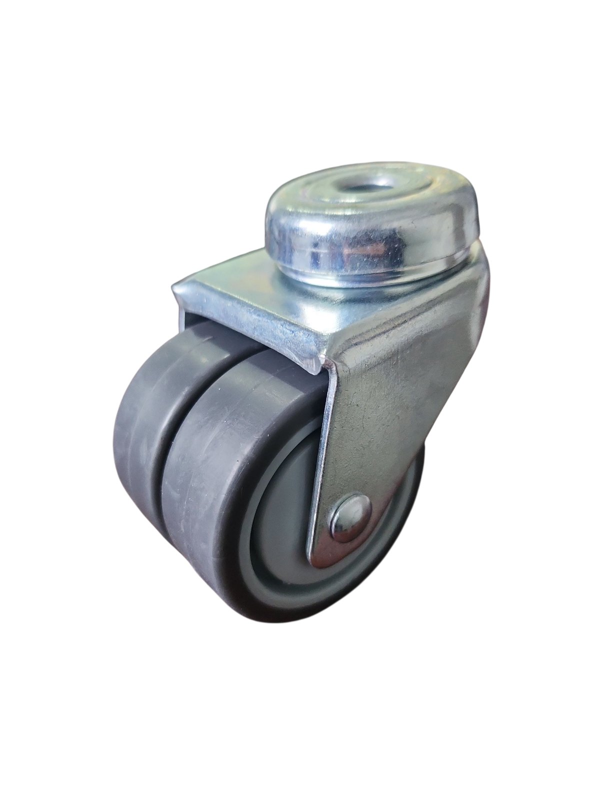 Колесо апаратне поворотне із отвором. Диск колеса виконаний із поліпропілену, з контактним шаром із термопластичної гуми. Апарані колеса призначені для використання на рівних покриттях (стандартні покриття усередині приміщення). Даними колесами зазвичай обладнані металеві меблі, лабораторне та медичне обладнання, лікарняні ліжка, купівельні візки, при касові бокси, морозильні скрині, холодильники.